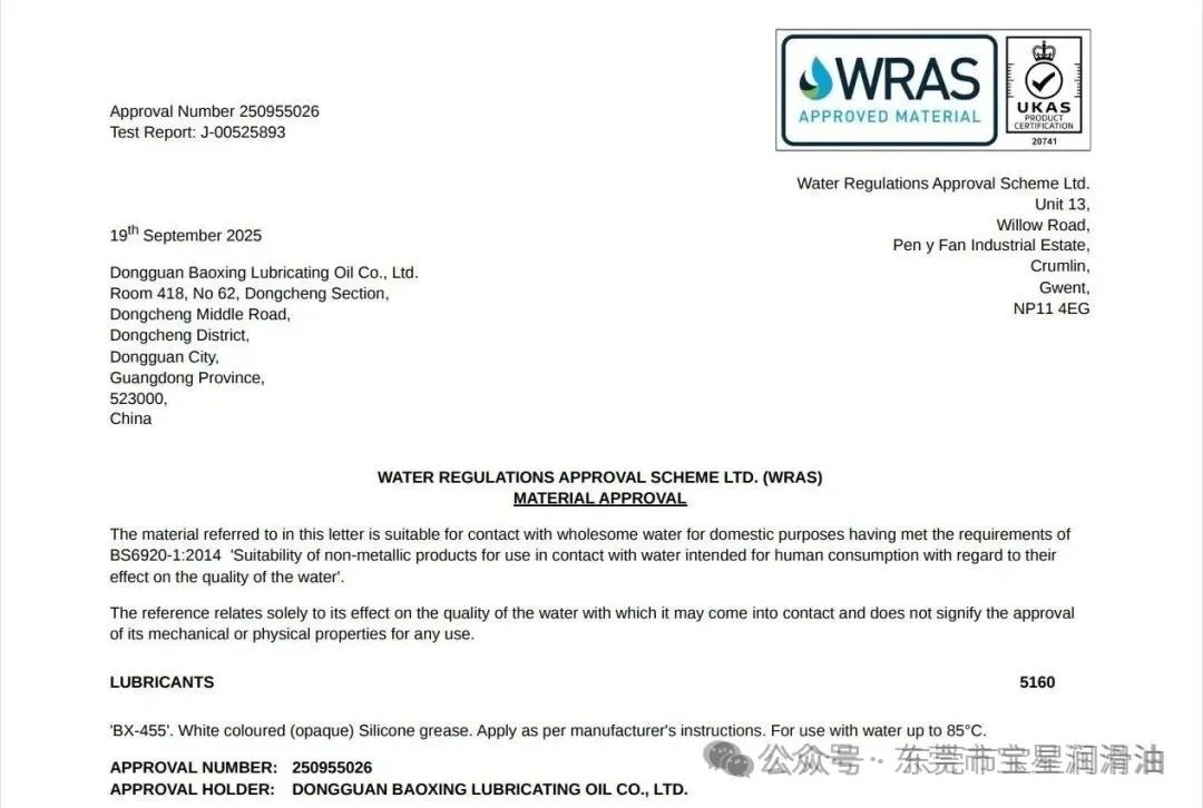 宝星润滑油已顺利完成水认证,成为涉水场景润滑的“合规新选择”,为企业解决安全与效率难题!如果您正在为密封圈润滑而困扰,欢迎联系我们!让专业团队为您的产品保驾护航。