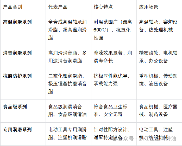 二、全品类产品矩阵:特种润滑产品覆盖多元需求