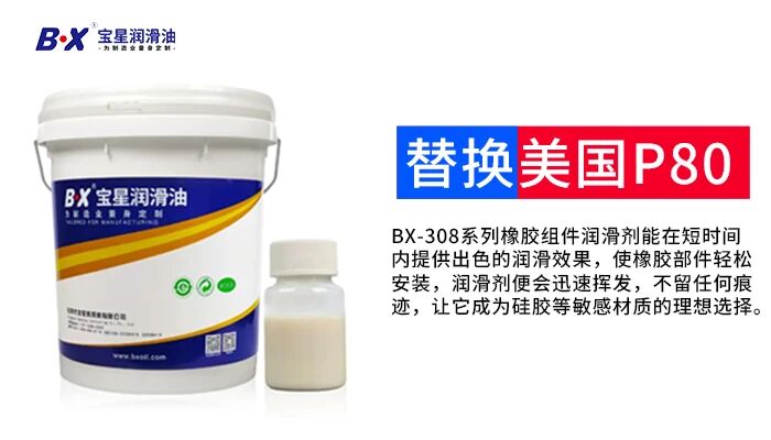 宝星润滑油凭借20年特种润滑油脂研发经验,推出BX-308-WY橡胶装配润滑剂,性能全面对标进口P80,可直接替代使用,从润滑效果、材质兼容性、成本控制到供应链稳定性,全方位满足汽车配件批量装配需求。