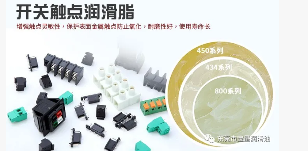 宝星BX-450系列接点润滑脂,用全合成高温复合铝基稠化剂搭配特殊添加剂,低接触电阻特性,能长期保护插针镀层,减少氧化磨损;40℃~180℃宽温稳定;防水性优异,同时符合欧盟RoHS、REACH环保标准,适配车企生产要求。