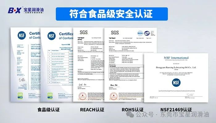 东莞市宝星润滑油有限公司,有着长达 20年的润滑油生产、研发与销售经验,积累了丰富的产品定制化及润滑应用案例经验,还获得了国内外 NSF 双认证、水认证和清真食品级润滑剂认证。