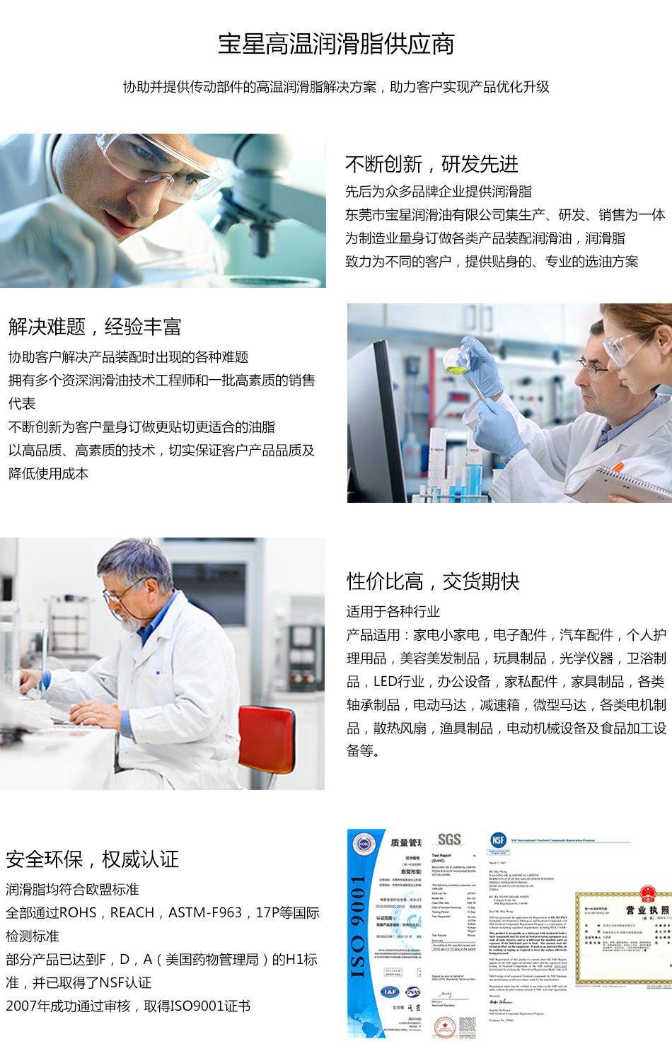 东莞市宝星润滑油有限公司致力于耐高温润滑脂的定制与研发服务。 为各类机械设备轴承等行业量身定制高温润滑脂,并提供一整套润滑脂的开发与解决方案。