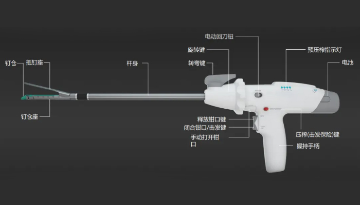 - 钉仓推送轨道:钉仓的平稳推送是保证缝合间距均匀的核心,轨道内侧若缺乏润滑,易产生摩擦阻力,可能造成钉仓偏移装配难,增加手术失误风险。