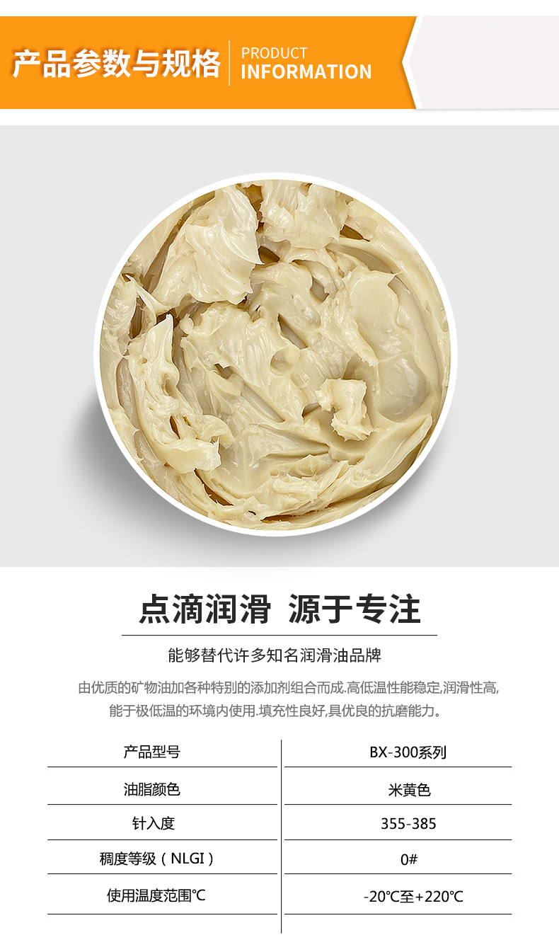 产品中心 - 装配行业板块 - 高温润滑脂 - 宽温轴承润滑消音脂BX-300/A(F-0)