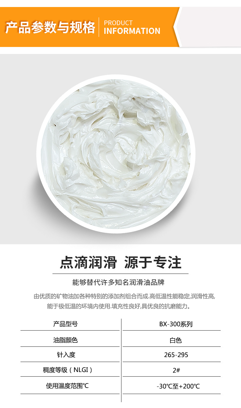 5、油膜厚度大,润滑性能好,具有一定的粘附性,运转中润滑脂不易流失