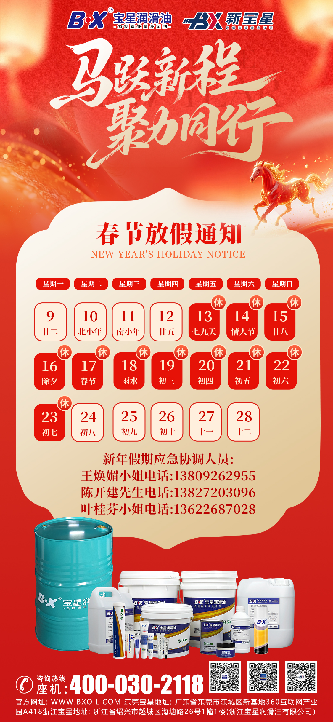 宝星润滑油公司全体员工祝各位客户2026年新春快乐,生意兴隆,心想事成,身体健康!