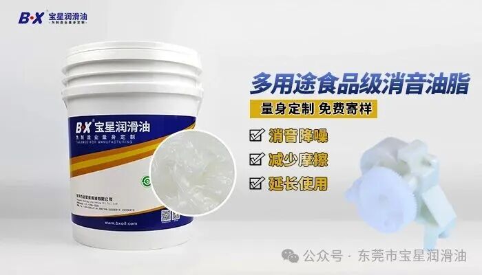 深耕特种润滑脂20年,宝星专注为制造业量身定制润滑方案,同时提供样品测试、技术选型及24小时技术响应服务,一站式解决塑胶齿轮材料兼容与工况适配问题,为智能硬件产业高质量发展筑牢润滑根基。