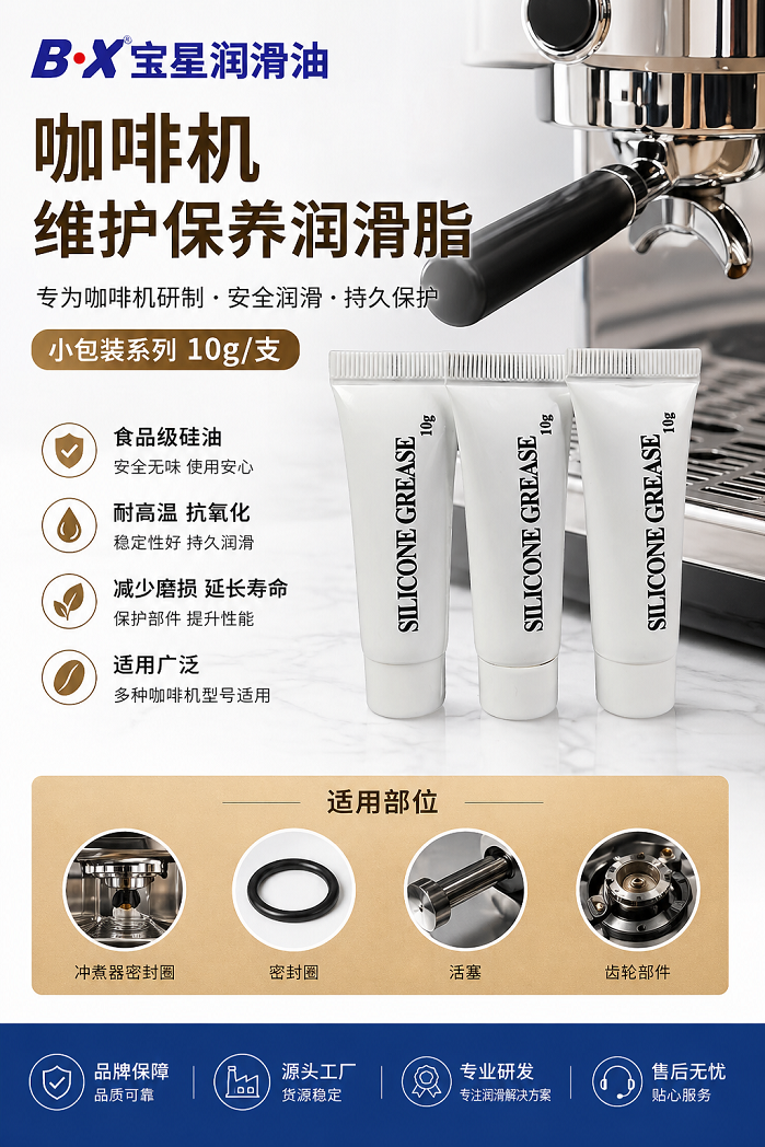 咖啡机一站式润滑选型指南|宝星食品级润滑脂·小只装定制更省心